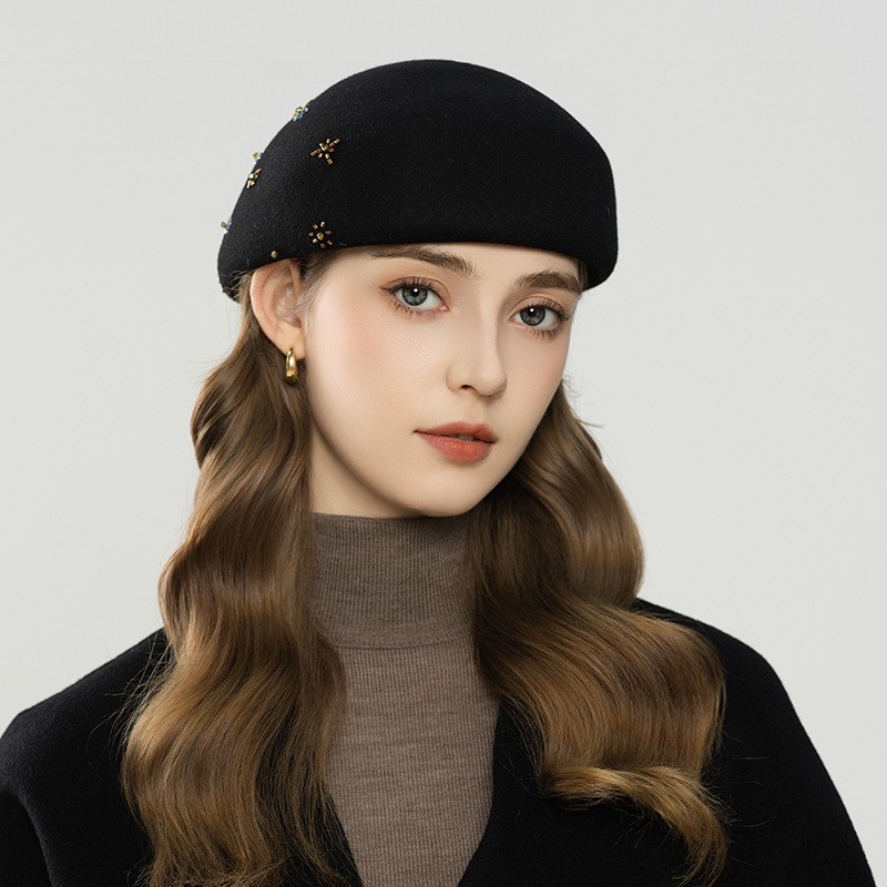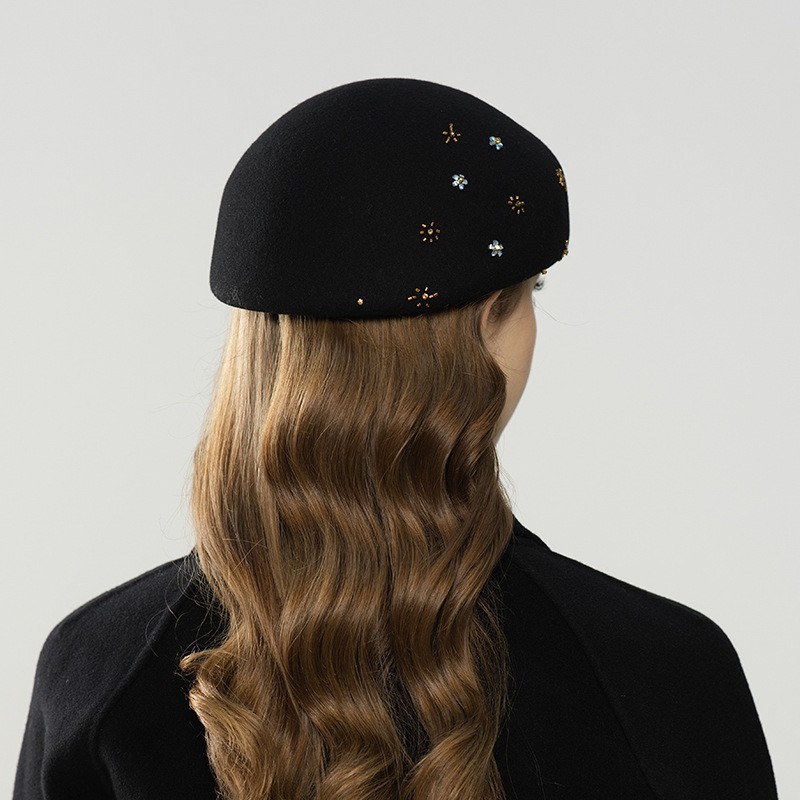 A timeless Parisian silhouette meets artisanal detail in this pure wool beret, designed in classic black and subtly embellished with hand-sewn beadwork. Perfect for elevated winter collections and accessory lines targeting refined, trend-savvy shoppers.