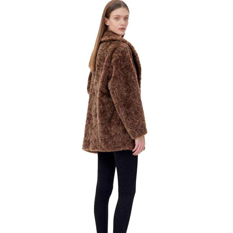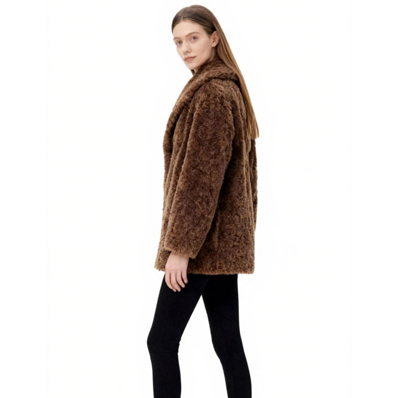 Crafted from natural sheepskin with a tight curly texture, this mid-length jacket offers both warmth and structure. Its soft chestnut color and refined button-down silhouette make it easy to pair with casual or tailored looks. Ideal for brands looking for authentic fur outerwear that balances practicality and elegance.