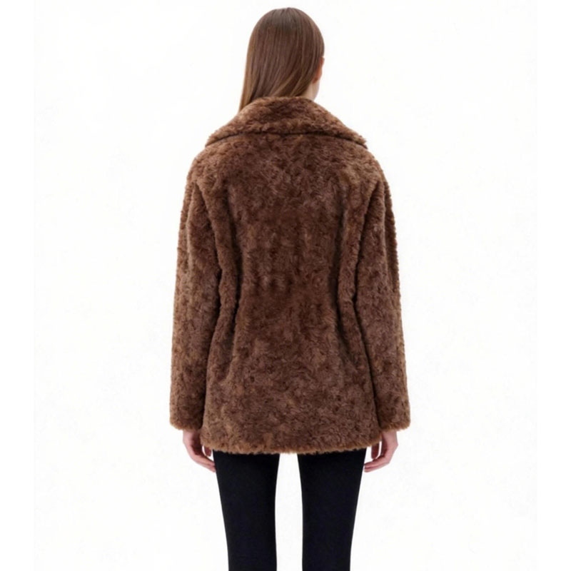 A timeless cold-weather classic elevated with 100% genuine sheep fur, this chestnut-toned jacket combines everyday comfort with natural luxury. The clean double-breasted cut, soft shawl collar, and plush texture make it a staple for premium winter collections.