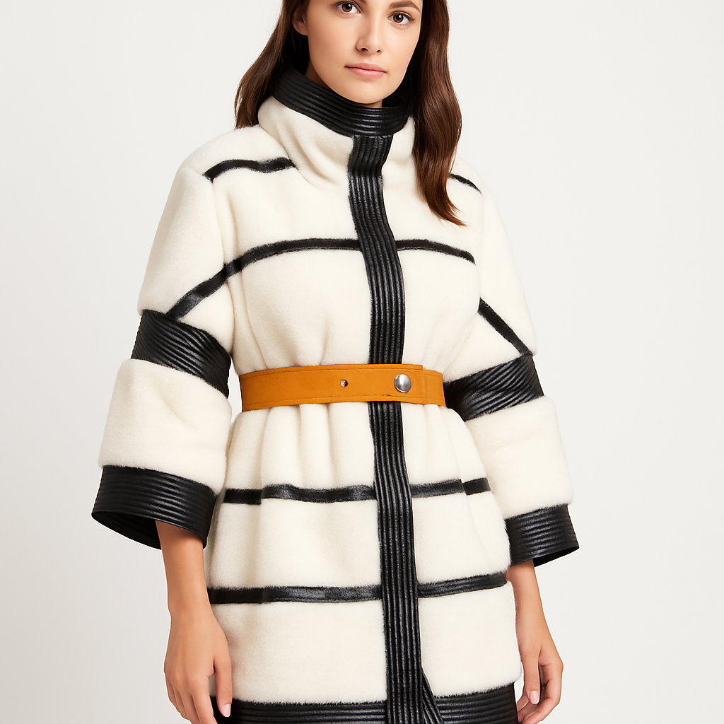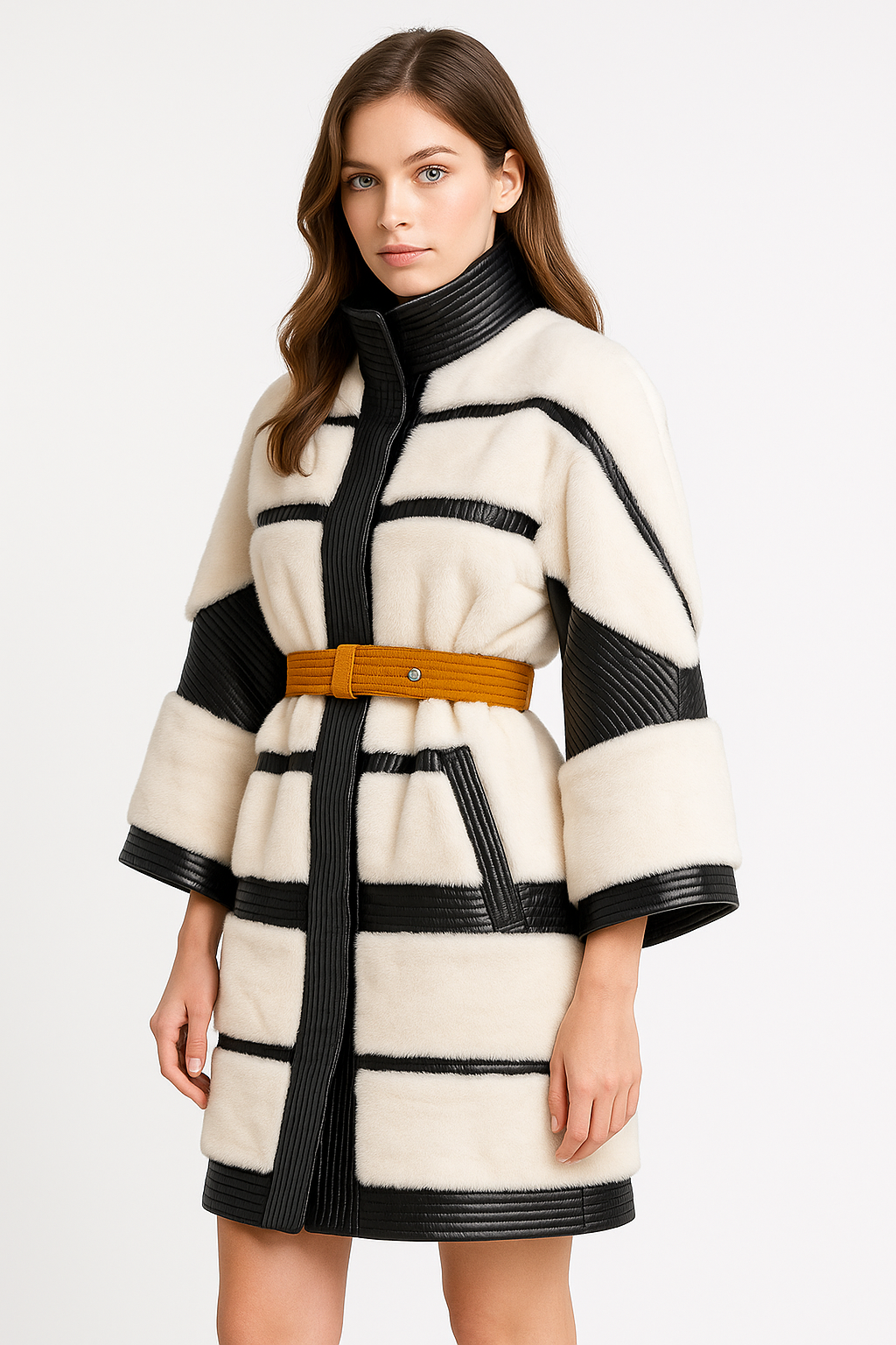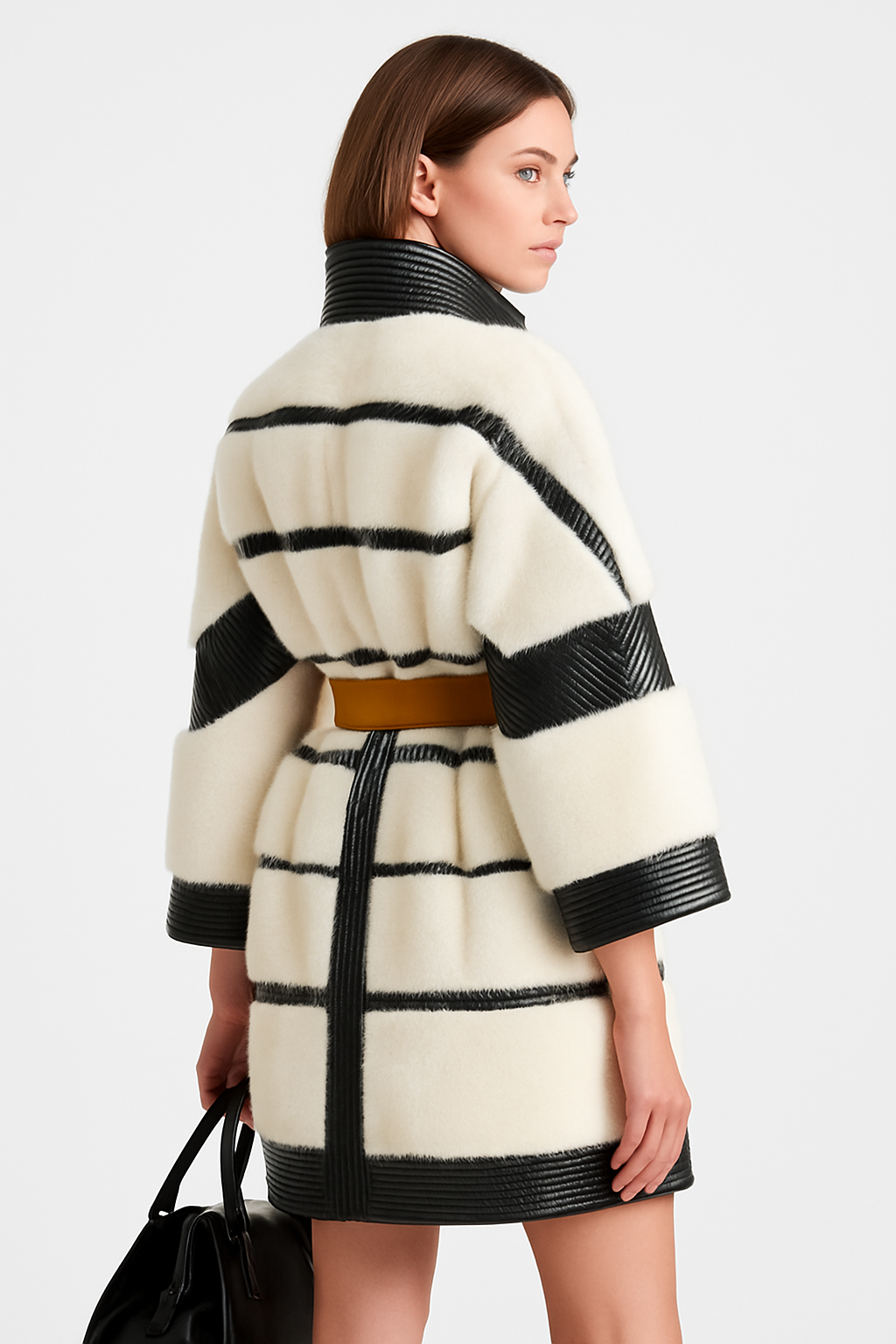 The Avant-Garde Faux Fur & Leather Trim Coat redefines modern winterwear with architectural structure and editorial elegance.