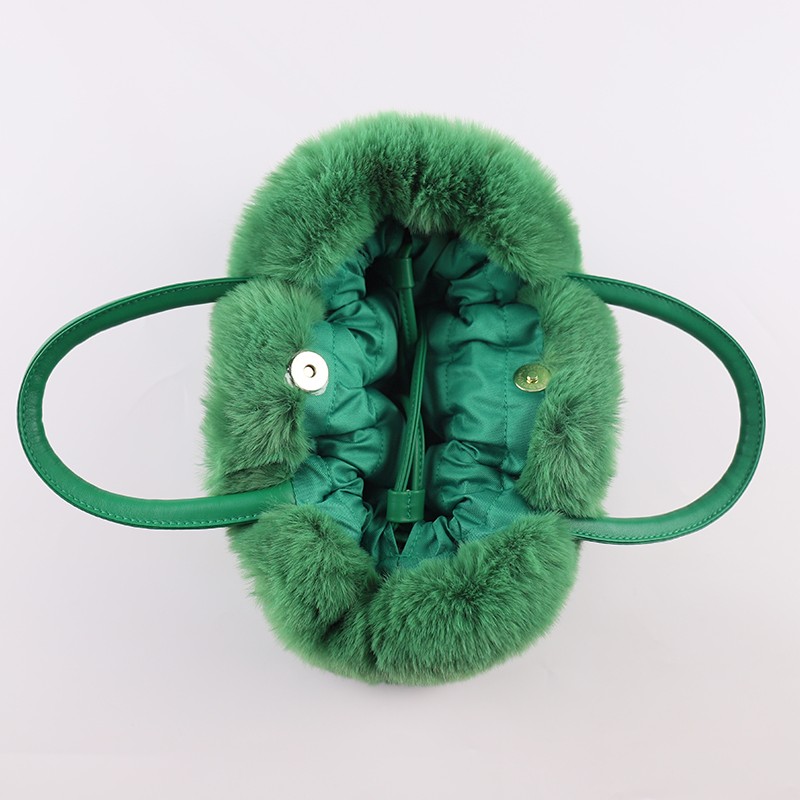 Soft, structured, and irresistibly cute—this faux Rex rabbit fur bag comes in 9 stunning colors. Designed with a gathered silhouette and top handle, it’s your go-to winter accessory for cozy style with a playful twist.