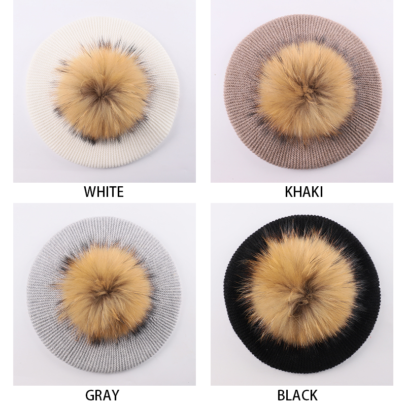 Pom: Detachable genuine raccoon fur pompom for styling versatility