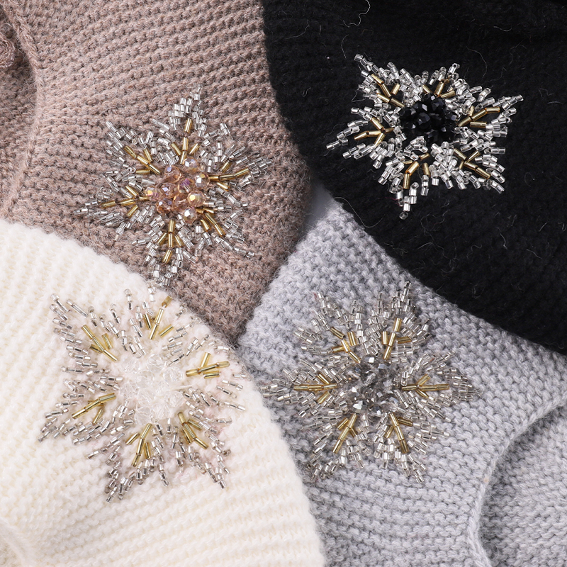 Design: Classic French beret shape with hand-beaded snowflake detailing