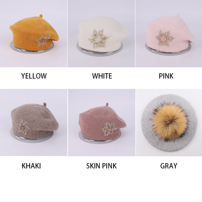 Grace your winter wardrobe with this exquisitely crafted angora knit beret, adorned with a hand-sewn beaded snowflake motif and topped with a luxuriously fluffy genuine raccoon fur pompom. Classic, chic, and warm – the ultimate statement for wholesale buyers targeting premium fashion markets.