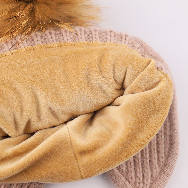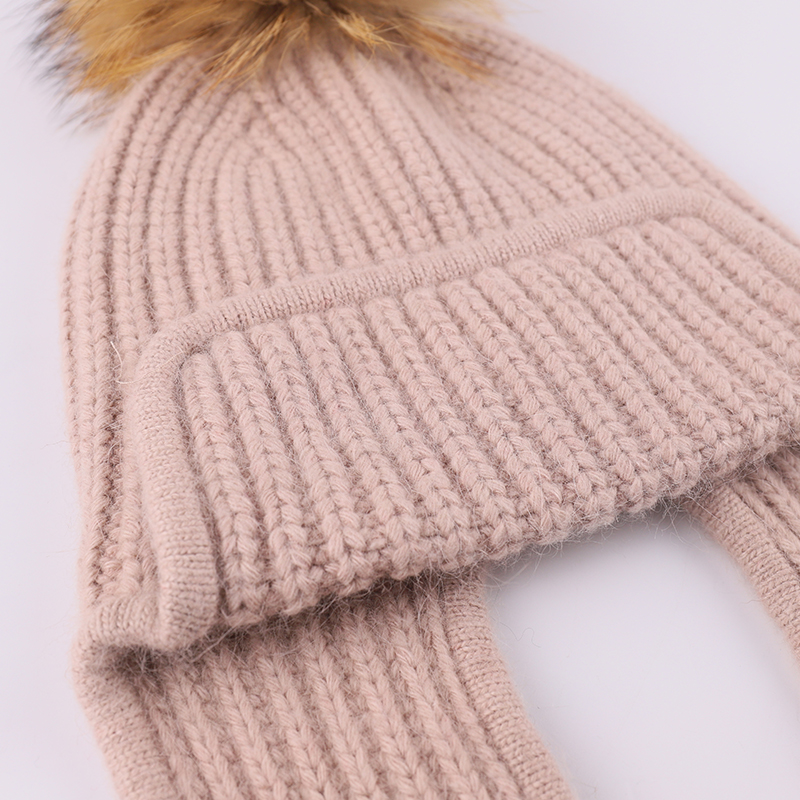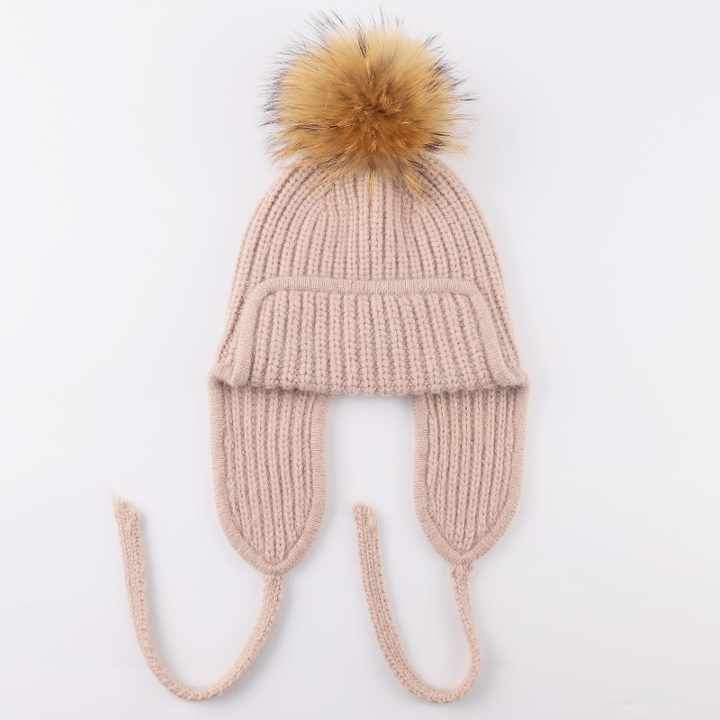 Elevate your cold-weather look with this luxurious earflap knit hat, crafted from premium angora-blend wool and topped with a detachable genuine raccoon fur pompom. Fully lined with ultra-soft velvet for unmatched warmth and comfort.