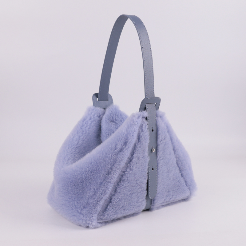 The clever design allows the bag to hold its shape beautifully while adding a strong visual statement—ideal for fashion-forward shoppers who appreciate structure, contrast, and cozy materials.