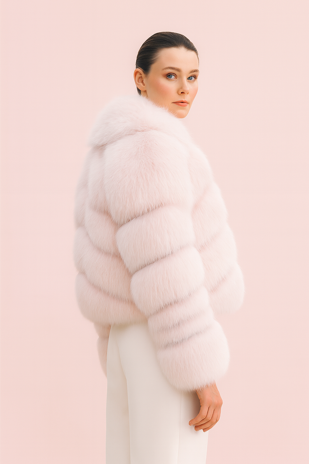 Its cropped length, elegant tone, and plush texture make it ideal for boutiques, capsule collections, and seasonal drops.