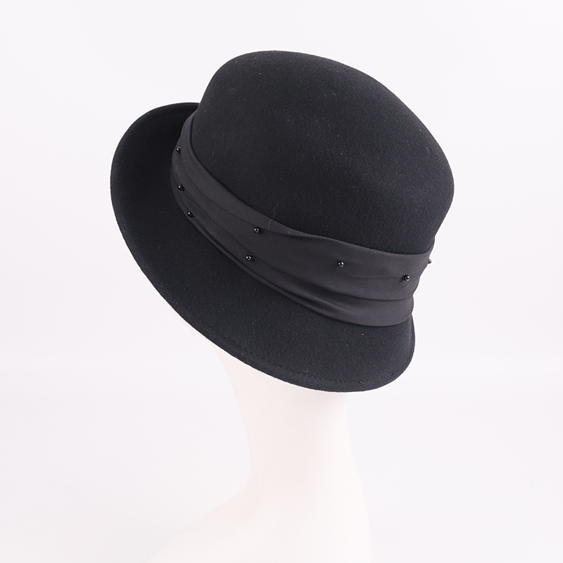 🎀 Subtle Detail – Tonal satin band with minimalist black bead trim for understated elegance