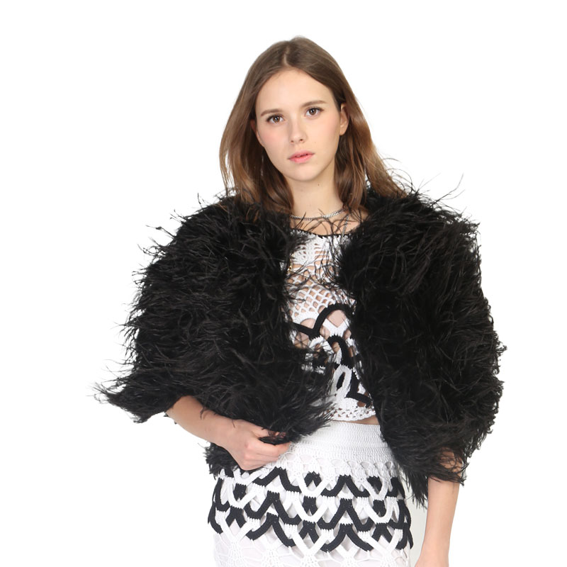 Designed for designers, stylists, and upscale fashion houses, this real ostrich feather shawl in classic black brings depth and versatility to any high-end wardrobe. Crafted from naturally soft and airy ostrich plumes, it balances lightness with statement volume. The dramatic silhouette complements both minimal and maximalist aesthetics.