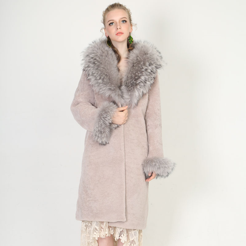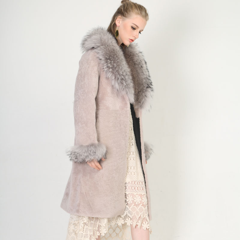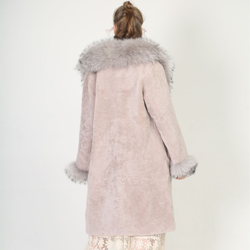 Luxury Shearling Coat with Real Raccoon Fur Collar – Elegant Winter Essential