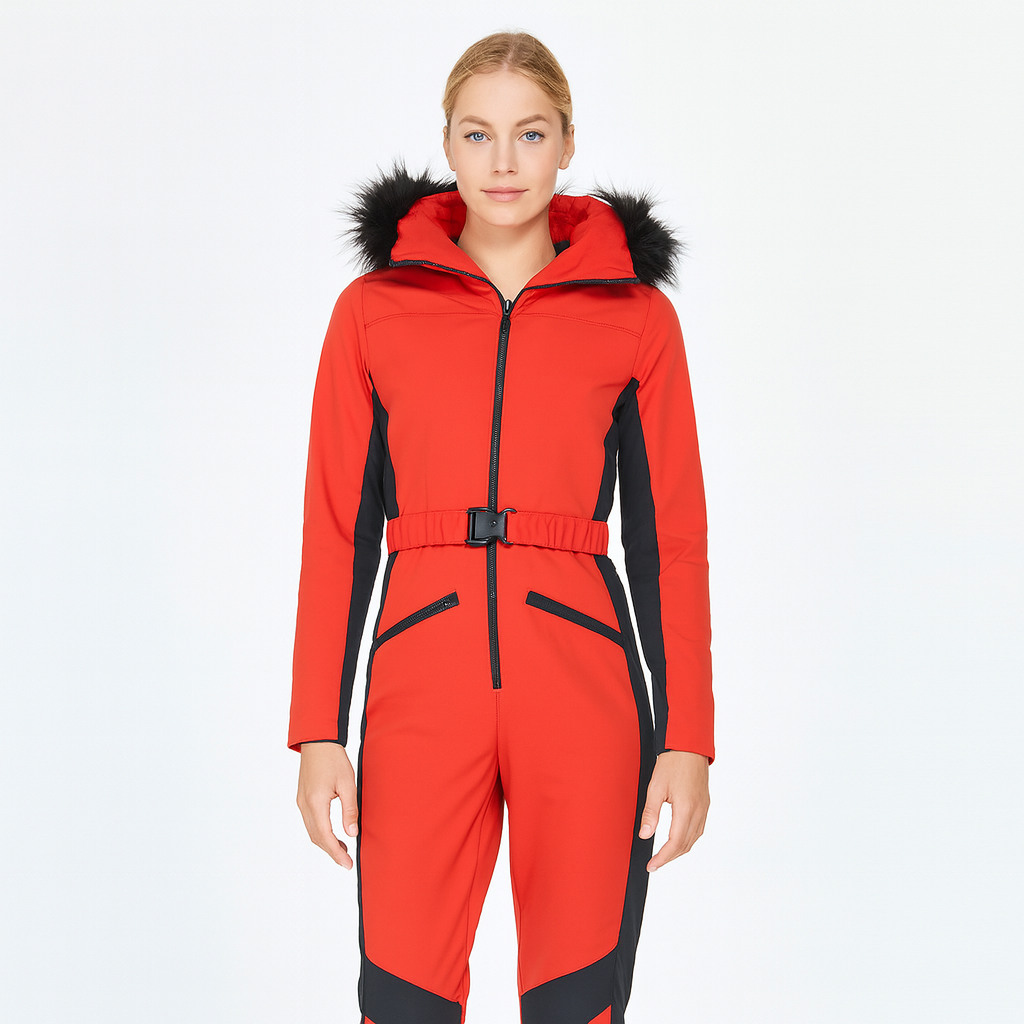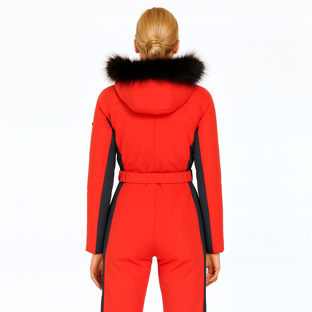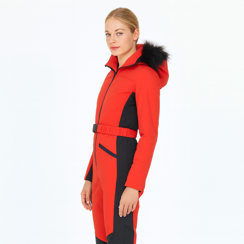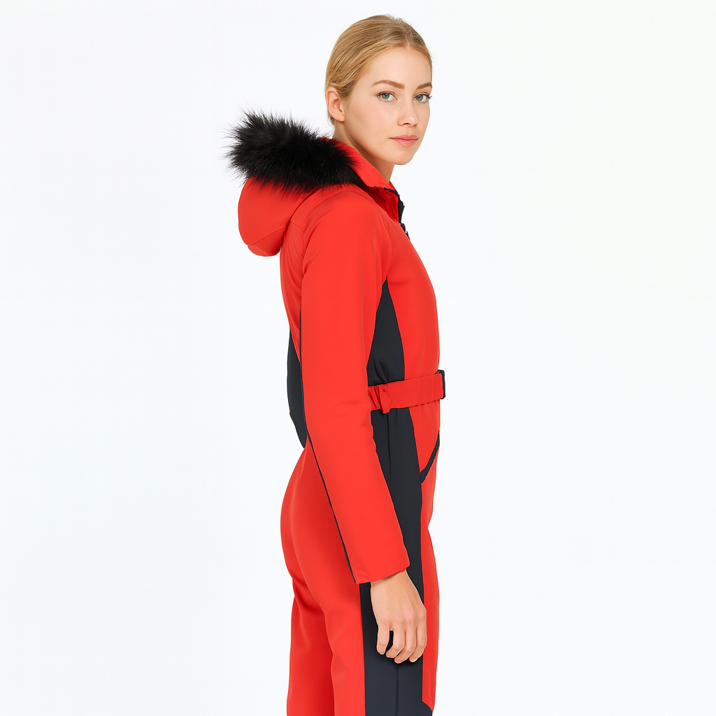 Designed for women who want fashion-forward ski gear without compromising performance. This vibrant red ski jumpsuit hugs your silhouette while providing technical protection from wind, snow, and sub-zero temperatures.