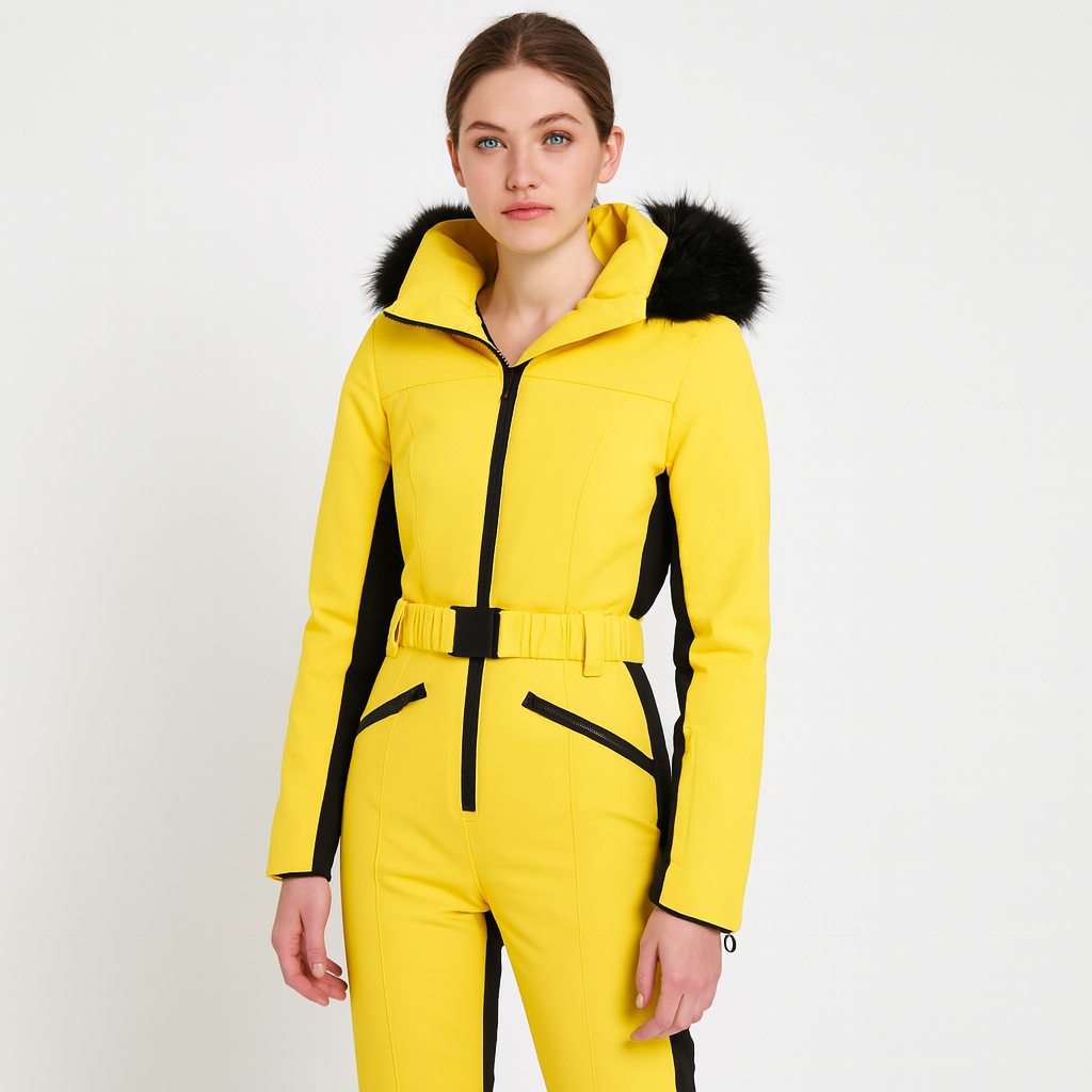 This ski suit brings together runway-worthy looks and mountain-ready function. Move freely, stay warm, and stand out with this bold, structured one-piece design.