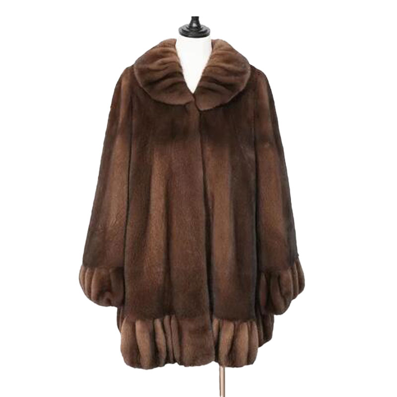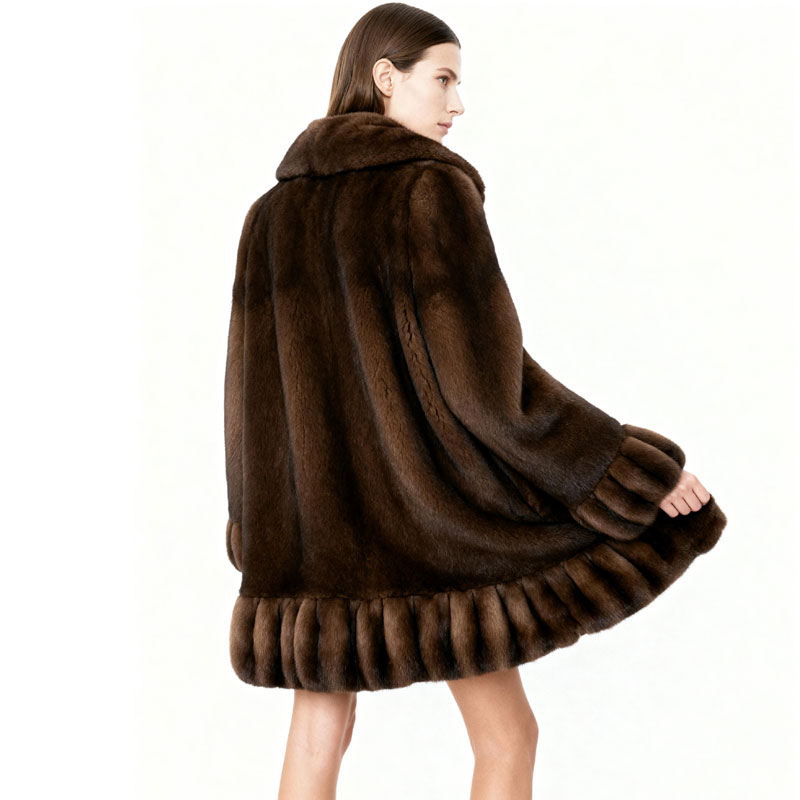 Crafted from 100% real mink fur, this short swing coat exudes timeless sophistication with a voluminous silhouette, pleated hem, and natural rich brown tones. A standout piece in any winter luxury collection.