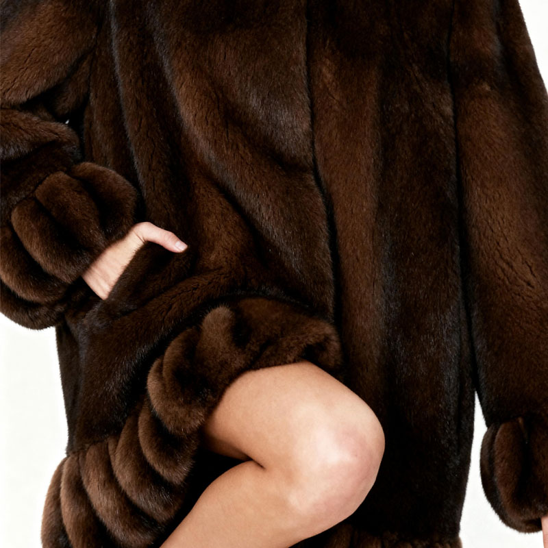 This chic mink fur coat features a classic swing silhouette with a pleated balloon hem and cuff detailing. The soft, full-bodied texture of authentic mink fur offers exceptional warmth and featherlight comfort. It’s a perfect blend of vintage glamour and modern refinement—ideal for upscale boutiques and fashion houses targeting luxury clientele.