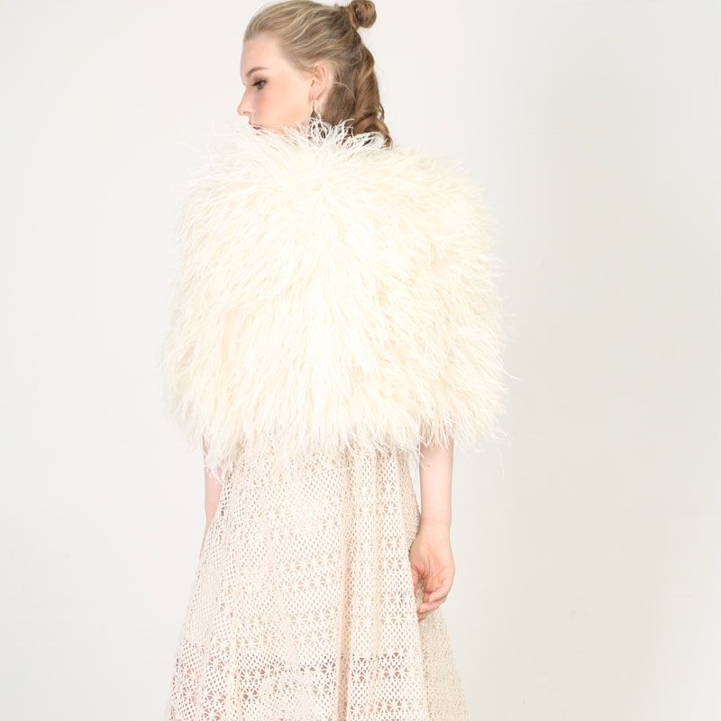 Crafted for elegance and soft drama, this real ostrich feather shawl in a pristine white hue delivers delicate volume and couture-level luxury. With its flowing, airy construction and feather-light touch, it’s ideal for bridalwear, gala styling, or premium fashion shoots. Designed to elevate any look with refined texture and timeless sophistication.