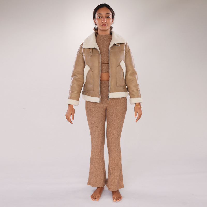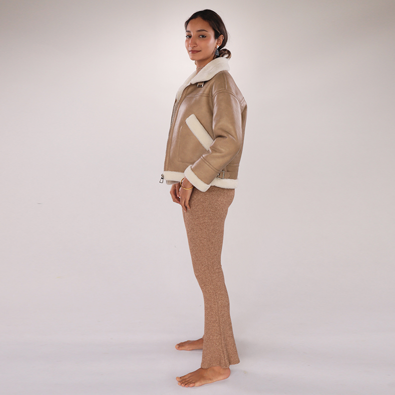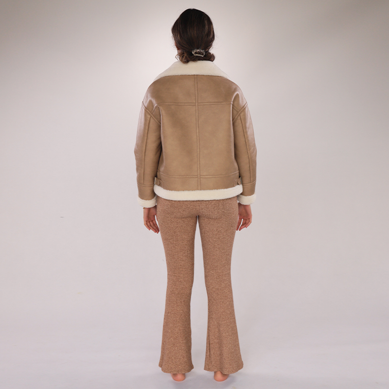 Faux Sheepskin Leather Motorcycle Jacket – Wool Lined