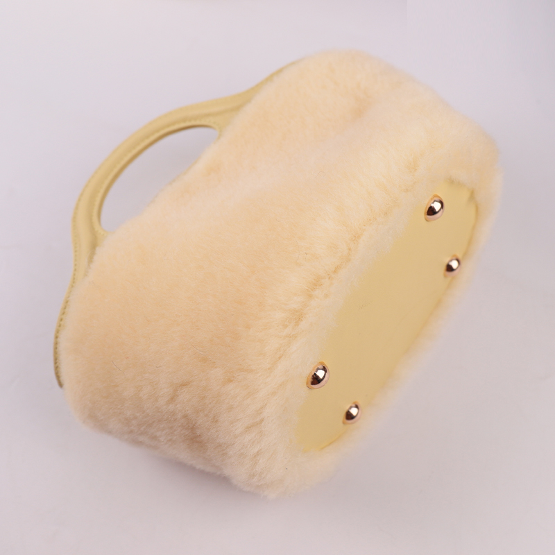 The Wool + Leather Mini Tote Bag is designed to be your go-to cold weather accessory. Its exterior is wrapped in soft, short wool fleece, contrasted by a structured top panel and handle in genuine leather—offering a refined yet cozy look.