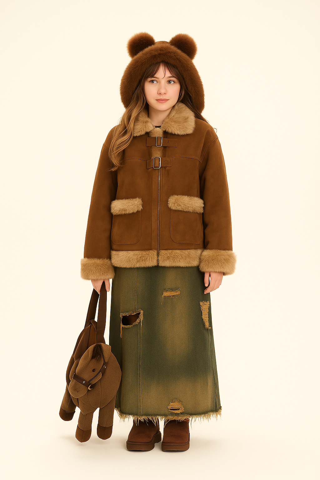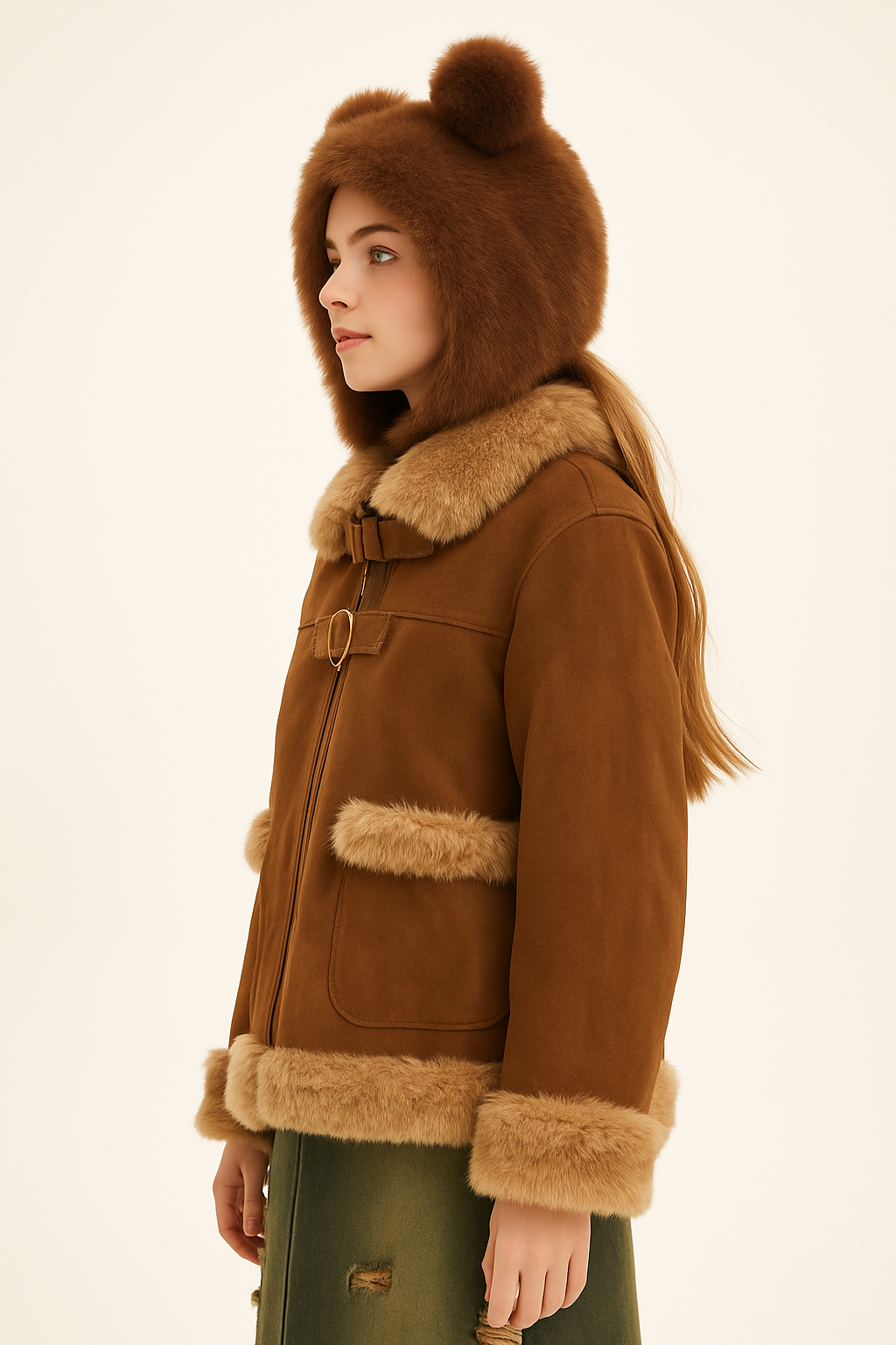 Crafted with premium faux suede and fluffy faux fur lining, it’s as cozy as it is eye-catching — a must-have outerwear piece for bold, playful winter wardrobes.